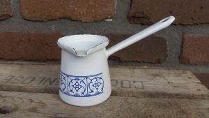 Emaille schenkkannetje, roomkannetje met steel Blau saks
